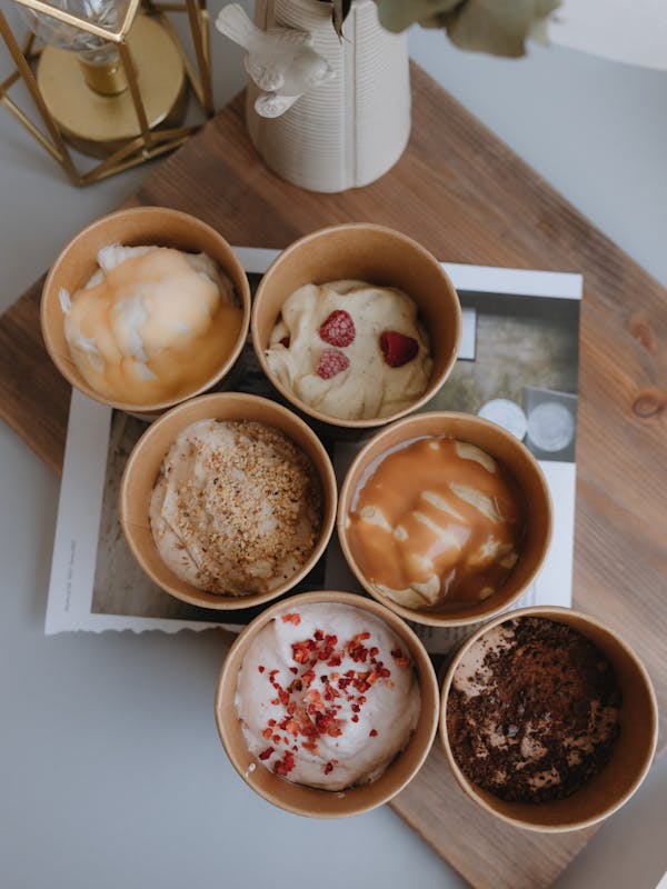 Todos nuestros sabores son recetas desarrolladas por nosotros mismos, incluyendo ingredientes locales, como menta fresca de río, miel de tiaca, berries de la zona y flores, entre otros. Incluimos también frutas de temporada como moras, manzana limona o murtas..